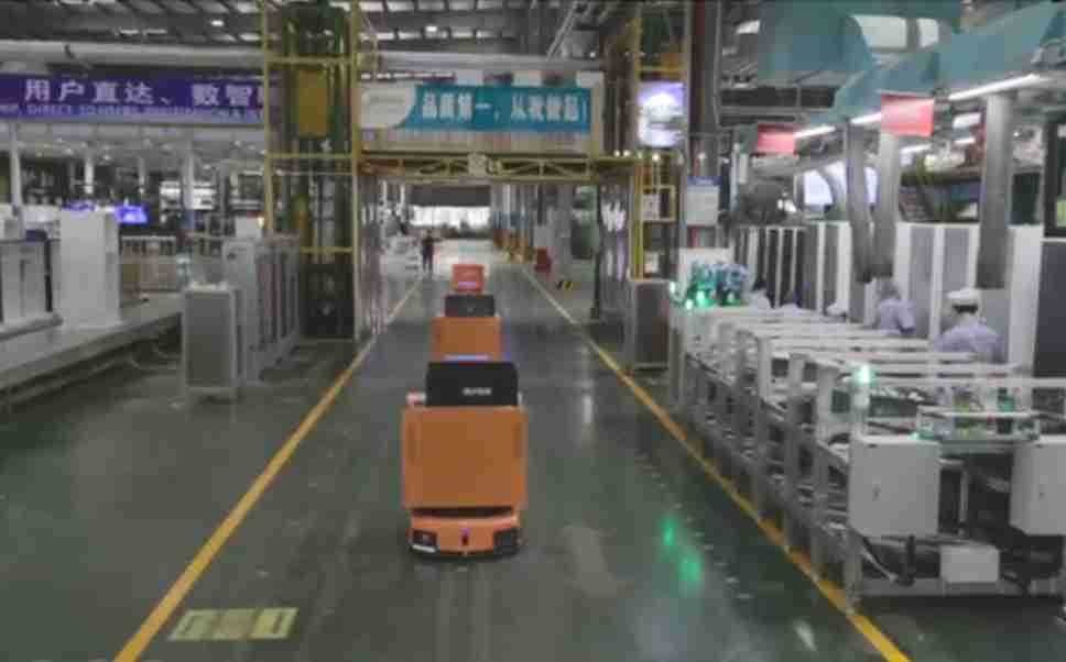 为车载冰箱物流配送打造的智能解决方案,,,包含产中物流通过潜伏举升AMR搬运至线边,,,产后成品物流智能仓储,,流程包含产中物流智能齐套入库,,线边安灯叫料AMR智能配送至线边,,,成品入库、、、、出库,,,,通过无人堆高车机器人,,,智能仓储管理替代人工作业管理,,,,实现更高存储、、、更高效率、、、、更具柔性化的解决方案。。
